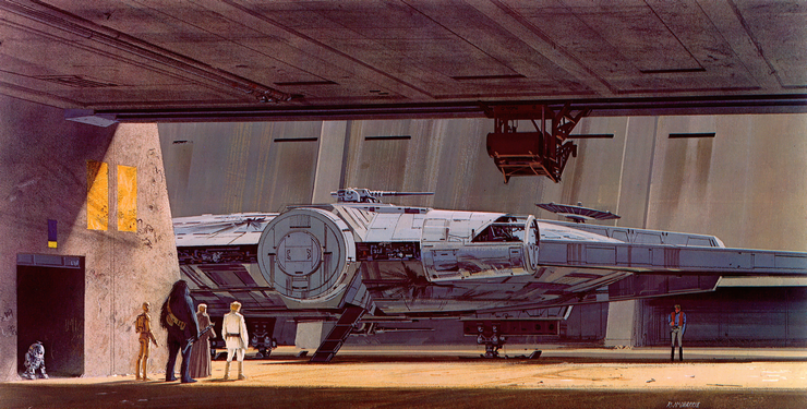 The Millennium Falcon we know was a rush job. George Lucas had vetoed the original design, and the set builders in England had to rush ahead with only sketches and photos. The scale models were still being rushed through.